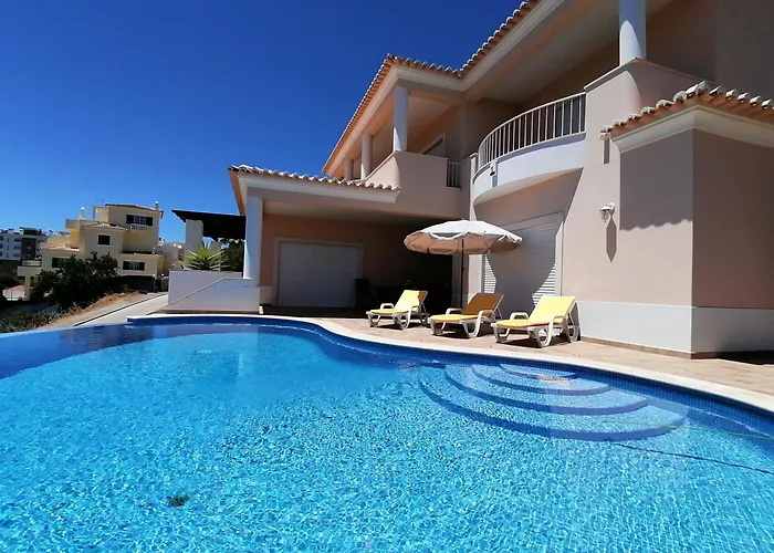 A 4 hálószobás Casa Rosa Villa Lagos úszómedencével ellátott terasszal várja vendégeit.